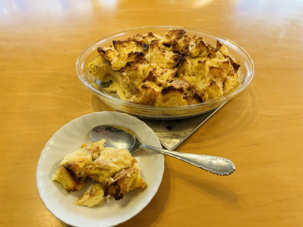 日本ではあまり馴染みがありませんが、イギリスでは結構食べられているデザートです。フランスパンが余ってしまったので、作ってみました。なお以下のレシピは食パン1枚分ですが、作った時は分量的には食パン3枚分ぐらいだったので、牛乳と卵と砂糖は以下のレシピの3倍の量で作っております。