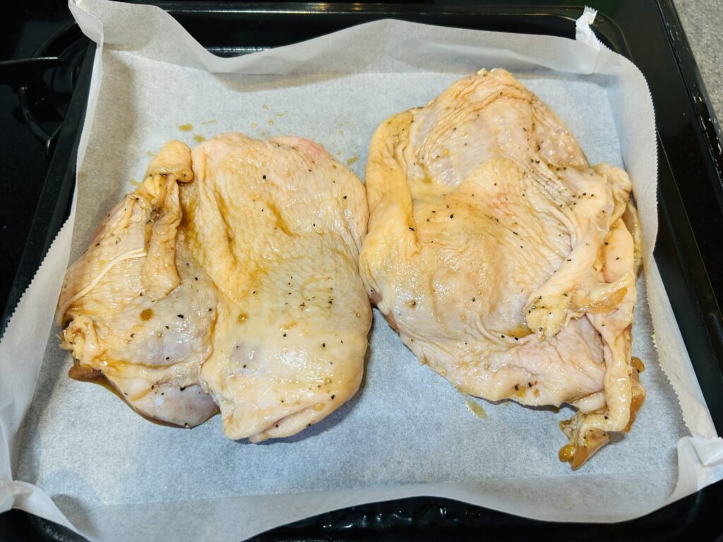 ⑤ 一度取り出してポリ袋に残ったタレを半量かけて、もう10分焼きます。