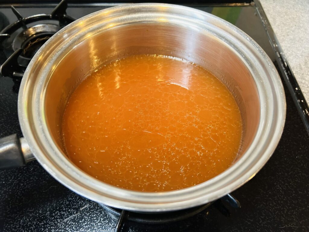 ① 水や調味料類を全て小鍋に入れて良く混ぜて、火にかけます。