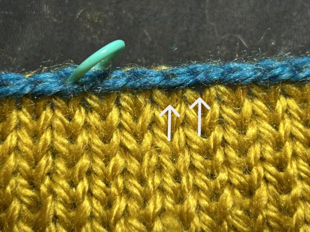 全体的に概ね等間隔で目を拾う必要がありますので、途中部分等が分かるようにマーカーを付けておくと間隔が確認しやすくなります。