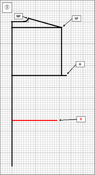 ⑥ ネックポイント(NP)とショルダーポイント(SP)を斜線で結びます。