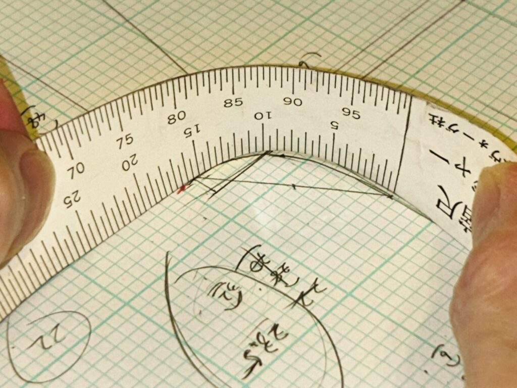 ゲージメジャーでカーブ部分を計る時は、写真にあるようにデザイン図のカーブの部分に1/4スケールのゲージメジャーをあてて、長さを計ります。