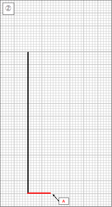 ② 袖丈線の一番下の点から右方向に向かって、手首回りの半分(8cm=16cm÷2)だけ線を引きます(右端をA点とします)。
