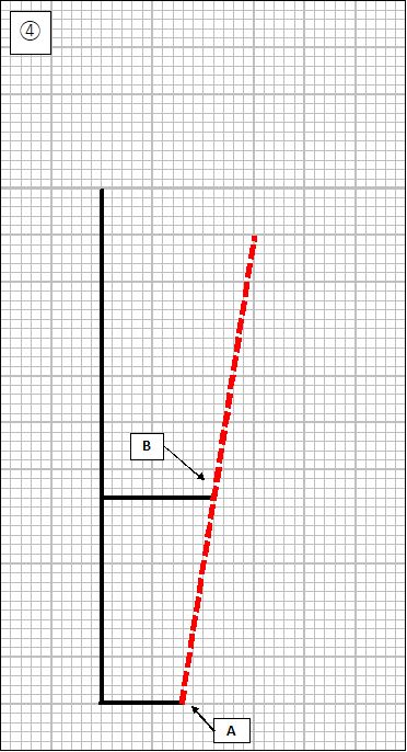 ⑪ C点とF点の中間の位置に、C-D線に垂直となるように1cm(ここでのスケール上は0.25mmとなっています)の線を描きます(この点をE点とします)。