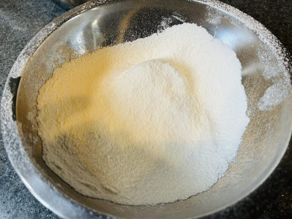 ① 薄力粉を2回振るっておきます。