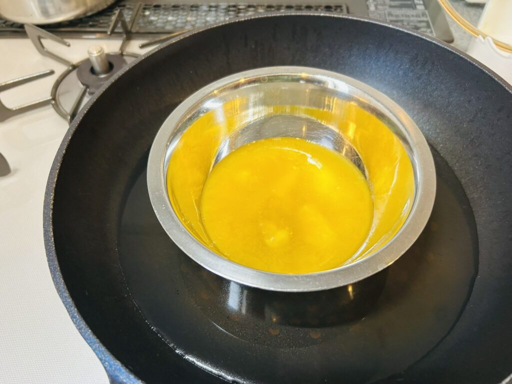 ② マーガリンをマーガリンを湯せんして溶かしておきます。