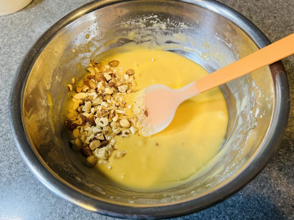 ナッツなしでも美味しいですが、粗く刻んだミックスナッツが入っていた方が食感が良くなります。ここはお好みでどうぞ。